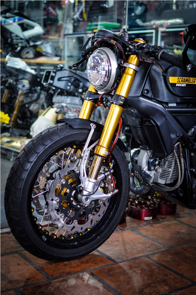 Chân phuộc CNC cho Ducati Scrambler 800 lắp ráp như zin.